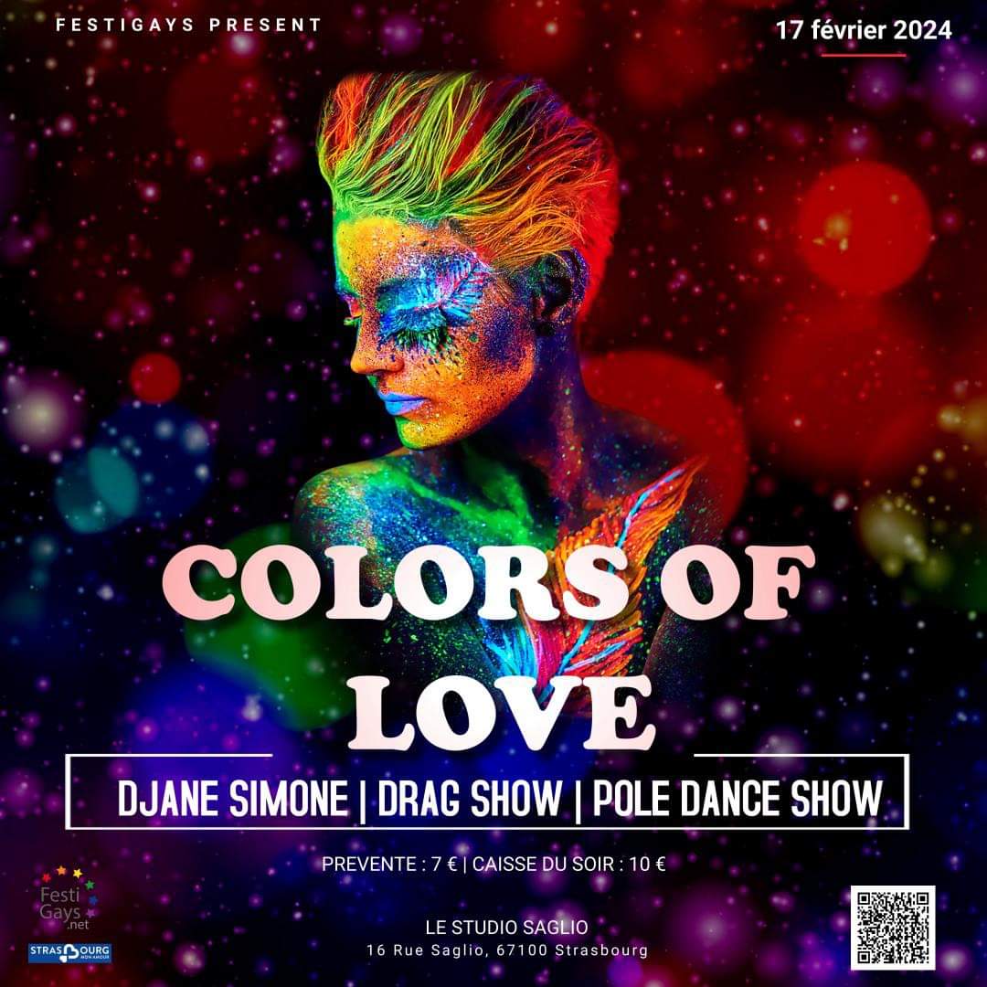 SOIREE « COLORS OF LOVE » LE SAMEDI 17 FÉVRIER 2024 ! Dans le cadre de Strasbourg mon amour, Festigays vous invite à fêter l’amour aux couleurs du rainbow. Le dress